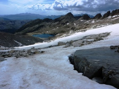 Bajaremos por el mismo lugar hasta el collado de Corones y una vez rebasado podemos optar por bajar mas directos, en dirección al ibón para abordarlo por la izquierda.