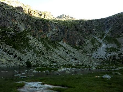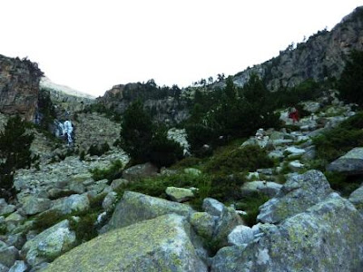 Antes de llegar hasta arriba tenemos dos opciones, una que sigue a la izquierda y va hasta el Ibonet de Corones, situado en un espectacular circo de origen glaciar, y desde el que vemos alzarse ya el pico Aragüells. La otra sigue por la derecha para subir directamente por la Pleta de Coronas con más de lo mismo, piedras y mas piedras.