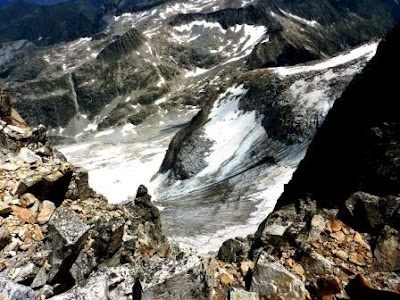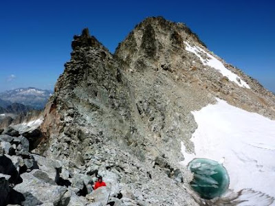 Aquí pudimos comparar la diferencia en cuanto a afluencia de montañeros se refiere entre subir por una vertiente u otra. Por la de Corones a penas vimos gente subir, en cambio por el lado del refugio Renclusa, era poco menos que una romería.