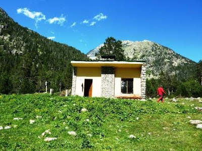 Con el pico de Vallibierna y su valle de un verde exultante, cambiamos de paisaje radicalmente dejando las áridas rocas para pasar al húmedo verde. Seguimos la senda que nos guiará hasta el refugio.
