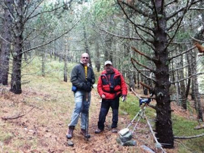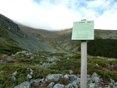 A partir de aquí comienzan a aparecer las primeras manchas de bosque, siendo a esta altura el pino la especie dominante. Seguimos bajando por la derecha y por una senda que traza el margen del pinar llegamos a cruzarnos con una senda que se desvía a la derecha (hay una gran fita), nosotros seguimos de frente bajando entre matorrales de piornos, arándanos y enebros rastreros, entre otros.