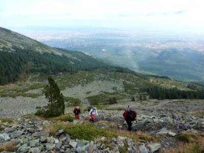 Continuamos recto en sentido Oeste para bajar por una ladera muy pedregosa hasta el collado de Castilla. La senda no está muy definida entre tanta piedra, pero no hay ningún problema de orientación porque consiste en bajar sin mas hasta el collado que vemos bajo en todo momento.