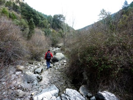 La bonita senda finalmente nos devuelve al fondo del barranco, en el punto común(4).
