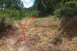 Después de 1,2 km de pista, volvemos a bajar al barranco por senda que apenas es apreciable, debemos estar atentos.