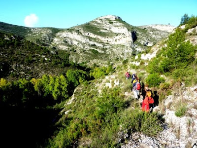 Hace unos cuantos años, Lute, Jose y yo, hicimos la ruta del Barranco dels Tarongers, así que conocíamos la zona y una parte del recorrido. Fué una excursión corta pero muy interesante, por sus encantadores parajes, añeja historia, por hacer nuevos amigos con los que compartimos la misma afinidad, y por el peaso almuerzo tiraos en medio del camino, donde algun@ practicó el noble deporte de «coger al vuelo el pellejo».