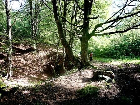 La histórica senda nos lleva por un precioso camino empedrado, a la vez que cruzamos sombríos bosque de hayas y en ocasiones de avellanos.