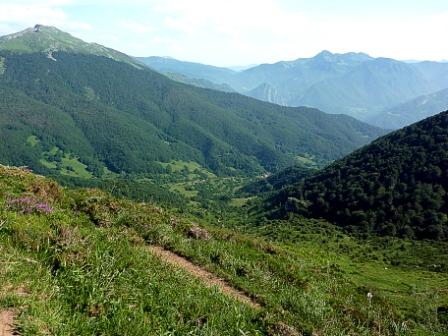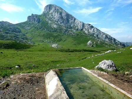 Desde aquí se nos ofrece una buena perspectiva de la Peña Beza (izquierda) y el Canto Cabronero (derecha). Más a la izquierda, separado por la Barcinera, collado desde el que hemos descendido hasta el río Dobra, vemos el monte de la Cotorra y en segundo término, más alejado y por detrás de ésta, localizamos el pico Jario.