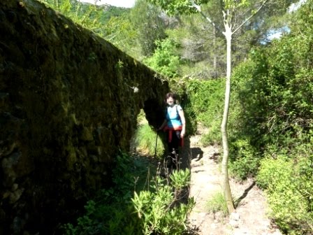 SL-CV82 (Senda histórica), a la que antes hice referencia. Continuamos por ella en descenso, sumergidos entre una frondosa vegetación, en la que predomina la Murta (Myrtus Communis), arbusto del que toma nombre este valle. Pasamos junto a la fuente del mismo nombre y continuamos el trazado de un acueducto bien conservado, por el que cruzaremos en varias ocasiones, por medio de sus arcos.