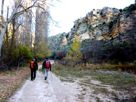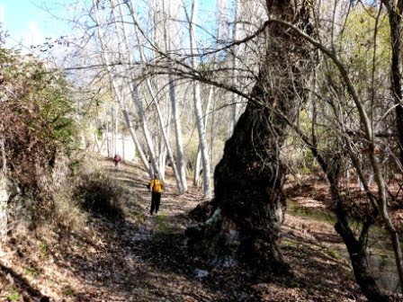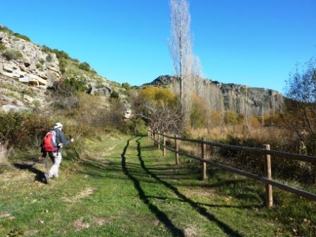 Desde aquí volveremos por el mismo trazado por el que vinimos hasta encontrarnos con el desvío de los manantiales del Ebrón, cerca ya del final de la ruta. En este punto como digo, giramos a la izquierda para pasar entre chopos y enlazar con un sendero botánico, donde algunos paneles nos ilustran sobre la flora del lugar. Este agradable camino nos guiará hasta la población de El Cuervo.