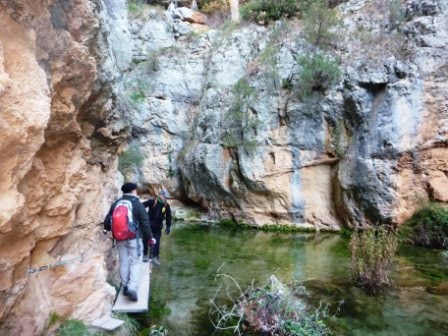 Primero fuimos hasta el puente natural de Fonseca, donde teníamos otra alternativa. Elegimos la que cruza el puente, y pasando al otro lado del río recorre los espectaculares estrechos por su parte alta. Llegamos hasta la cascada de Calicanto, muy cerca de Tormón, un bonito lugar para descansar y volver de nuevo buscando la corta alternativa de vuelta hasta unirnos de nuevo al trazado principal.