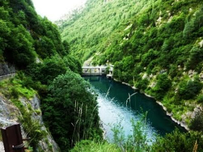 Pronto y por un camino hormigonado, llegamos al encajonado embalse de Estos.