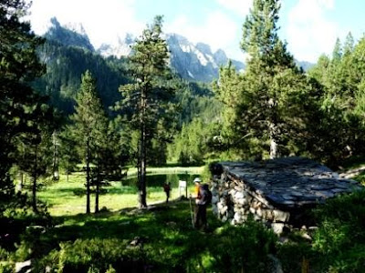 Siguiendo siempre las señales del GR y otras con pintura verde, llegamos al Ibonet de Batisielles, enclavado en un lugar espectacular. Aquí encontramos un pequeño refugio, mas bien chozo, que nos puede servir en caso de tormenta.