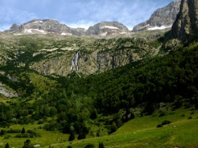 Pasamos por zonas emboscadas y cruzamos el arroyo del barranco de la Aigüeta que proviene de los ibones que mas tarde visitaremos. Nuevamente se nos abre el entorno, con la impresionante barrera ante nosotros.
