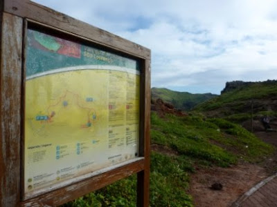 La primera anécdota del día se produjo en el transcurso del viaje en bus. Pregunta que te pregunta, finalmente parece que nos aclaramos y en la estación de autobuses de Funchal tomamos uno que en teoría nos dejaría en el punto de inicio de la ruta en baía d’Abra. Después de preguntar al conductor, nos confirmó que ¡¡¡siii!!! iba para allá. Bueno pues a mitad de camino, el buen señor parece que recapacita y bajando de las nubes, gira la cabeza para hablar con nosotros y con el gesto habitual y lógico de que había metido la pata hasta el entre piernas, nos hace la pregunta-confirmación de si íbamos a la peninsula de San Lorenzo. Si claro, volvimos a aclarar una vez más…. Pues este no va hasta allí, nos dijo, el que se debería haber cogido, salía media hora mas tarde. Hay que tomar otro en Caniçal que nos acercará hasta allí.