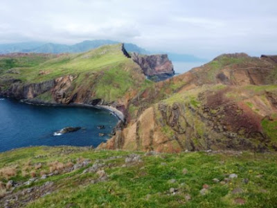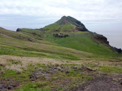 Desde allí arriba, al fondo hacia la derecha podemos ver las islas Desertas, y un poco más retirada hacia la izquierda, la vecina y habitada isla de Porto Santo.