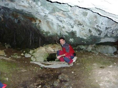 En unos 300mts nos encontramos con una pared de roca, este punto nos indica el desvío de la cueva del Agua. Hacia la izquierda llegamos en pocos metros hasta ella.