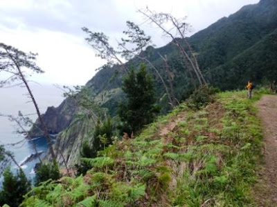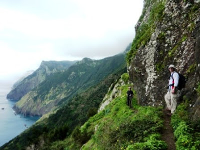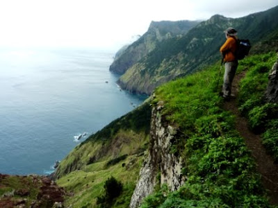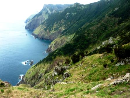 Excursión vertiginosa por los acantilados de la costa norte de la isla de Madeira (Portugal). Toda la isla cae al mar en abruptos acantilados, por lo que no abundan las playas, siendo esta costa verde, una fuente de espectaculares panorámicas, por la que corre uno de los escasos senderos de acantilados que existen en la isla. El sendero, muy bien conservado, lo emplearemos para unir las poblaciones de Porto da Cruz y Ribeira Seca, aunque podemos alargarlo más, acabando al menos en el antiguo túnel de Caniçal, donde también existe parada de autobús.