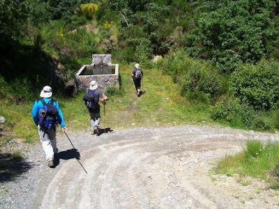 De nuevo un esplendido día, y esta vez nos quedamos por la zona ya que quedamos con Cesar, que es la persona que regenta el albergue para ir a comer allí. Llegamos de buena mañana a Rabanal de Arriba y junto a la fuente tan característica de esta zona, comenzamos nuestra excursión. Nos libramos de la solana en casi todo el tramo de pista que primeramente se recorre hasta la Braña de Cubajo ya que el sol todavía no había despertado lo suficiente y la ladera de nuestra izquierda nos daba un pasajero respiro.