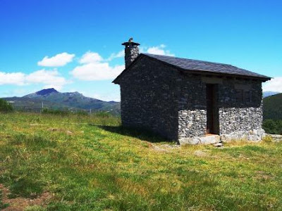 Salimos de el para seguir hasta llegar al extremo del cordal, donde unas pequeñas elevaciones de roca, nos lo indica. Aquí deberemos bajar por la ladera de la derecha y en 1km aproximadamente llegamos a un pequeño refugio en muy buen estado.