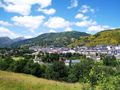 Un poco más adelante vemos ya la población de Villablino con la sobresaliente figura del Cueto de Arbás al fondo.