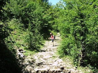 Empezamos la ruta y todo iba bien hasta que empezaron los “temblores” de piernas de la chica, coincidiendo con la bajada empedrada, para terminar de arreglar la situación. Bueno pues como dicen que rectificar es de sabios, eso hicimos, decidimos llegar hasta Amieva y llamar un Taxi que nos llevara hasta Soto.