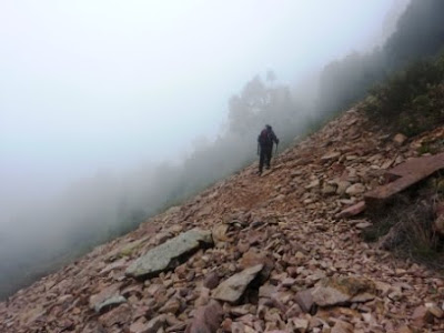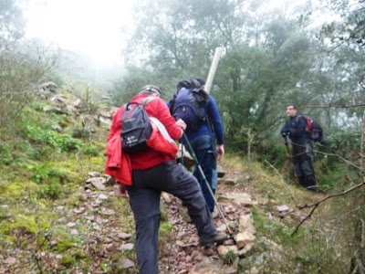 En esta ocasión nos hemos unido a nuestros compañeros de Sagunto. Ellos suelen moverse muy a menudo por esta sierra, así que son buenos conocedores de sus sendas, por lo que nos gusta dejarnos llevar y que ellos sean los que organicen las rutas. Esta en cuestión ya la habíamos hecho con anterioridad hace unos años atrás, pero en sentido inverso. La diferencia de hacerlo de una forma o de otra es sustancial en cuanto al esfuerzo se refiere. El sentido que hemos tomado en esta ocasión, supera un fuerte desnivel de ascenso en una distancia mas corta que a la inversa. Las nieblas que se cerraban en las zonas altas nos privaron de las magníficas vistas que se obtienen desde allí, además de dejar para otra mejor ocasión el ascenso al Gurugú, que se quedó totalmente encerrado dentro de la niebla. Una vez alcanzado la Peña Pastor, solo nos quedaba bajar y bajar, disfrutando de unos paisajes que no cansan de ver repetidos. Luís y Lute en sus periodos de «stand by», optaron por comenzar la misma ruta pero a la inversa, para evitar el ascenso mas fuerte, con el fin de encontrarnos en el collado de Íbola y dar el acostumbrado repaso gastronómico.