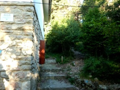 Dejamos el trazado del GR/Estels y nos dirigimos hacia la casa que vemos a pocos metros del pozo y dejándola a nuestra izquierda, seguimos una senda que esta señalizada en su entrada con dos fitas, además de encontrar algunas marcas amarillas.