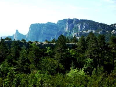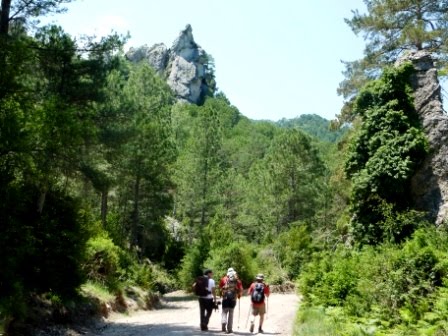 Nos hemos situado en la base de la Mola del Boix, ahora vamos a recorrer su frondosa falda, para rebasar este magnífico resalte y ascender por el monte de Serrasoles, en el que aclara la vegetación y donde se nos ofrece magníficas vistas, con singulares formaciones, como la Joca de, afilada punta.