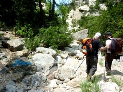 Continuamos para recorrer más tarde el barranco de Capatx y conectar después con el GR8 que dejaremos pronto para llegar a otro barranco espectacular, el de la Coscollosa. Desde aquí y hasta el refugio de Font Ferrera, seguiremos las marcas de Estels del Sud (una estrella pintada de azul).