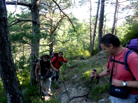 Preciosas sendas nos transportaron a través de estupendos parajes, que hacían arrancar al personal, expresiones de fascinación. Una vez dejado de lado la Mola del Boix y ascendido a Serrasoles, tomamos una senda que poco a poco perdimos, pero se nos permitía avanzar sin problemas por los pasillos naturales que forma el boj, la dirección a seguir estaba clara y pronto volvimos a encontrar su trazado que nos devolvía al bosque.