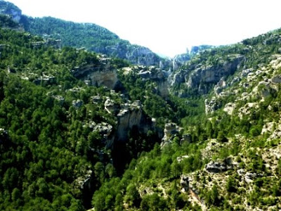 Después del baño, volvemos por el mismo lugar río arriba, siguiendo las marcas de Estels que como dije anteriormente se desvían para ascender y acercarse al barranco de la Coscollosa, primeramente por su parte alta. Las vistas desde aquí son indescriptibles, el rio Matarraña ha esculpido toda una obra de arte.
